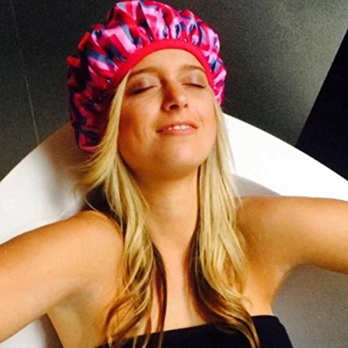 At Dilly's Collections, we pride ourselves that we are the first EVER to use microfibre in shower caps. Designed in Australia, we have a three-layer shower cap to ensure that your hair stays dry in the shower. The inner layer is lined with a soft microfiber material. The middle layer is reinforced with PVC water proofing materials. With these first two layers, your hair will be protected from steam that often causes your hair to frizz and unravel. The outer layer of our shower cap is coated in premium quality satin. With our innovative microfiber lining, our shower caps have an extra line of defence to protect hair treatments and safeguard your blow-waves no matter how long you spend in the shower! Our shower caps are specially designed for even the thickest and fullest head of hair. The custom made super secure band is there to seal out the humidity and moisture during shower time, protecting blow waves for up to a week! To preserve hair treatments overnight, our caps can be used as sleep caps; they're comfortable and sturdy, protecting your hair that can become unruly overnight. Our shower caps are high quality and durable. They are machine washable, so you can reuse them again and again! Suggested Directions: *Recommended to not place shower cap directly underneath the shower for lengthy periods of timeFeature