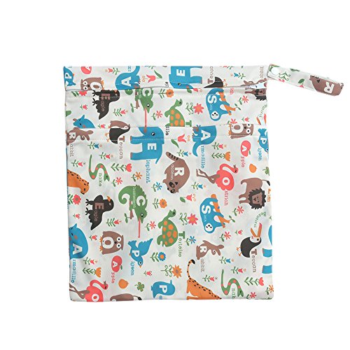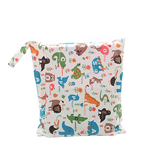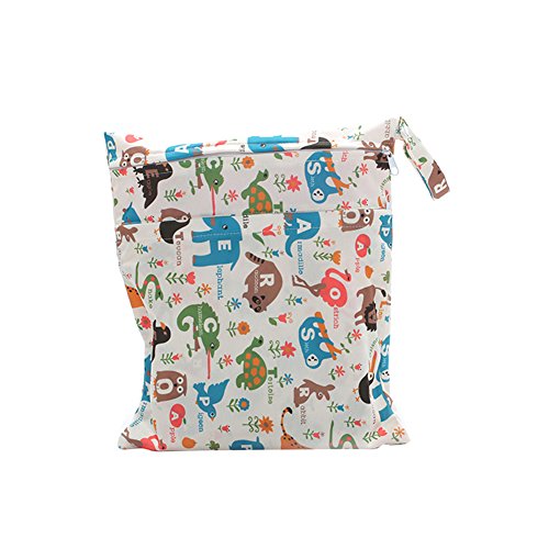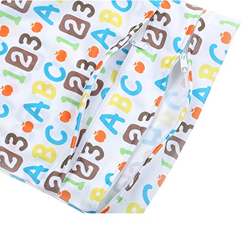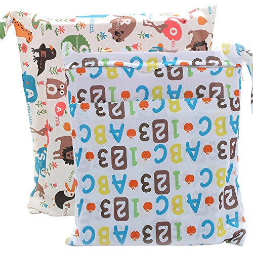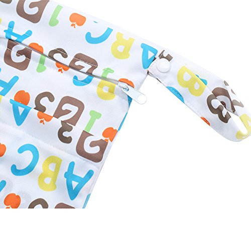 2.Each bag features a snap handle for easy carrying and two coordinating zippers, large zippered pocket for wet items or dirty diapers; Small zippered pocket for dry, clean items.