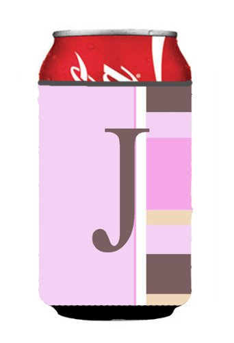 Letter J Initial Monogram - Pink Stripes Can or Bottle Beverage Insulator Hugger