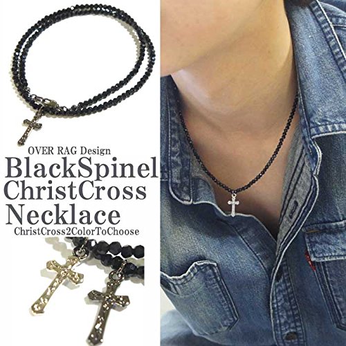 -. Title : OVER RAG【芸能人多数愛用!さり気ないクロスが印象的な大人アクセサリー】ネックレス メンズ レディース カットオニキス ブラックスピネル風 クロス 十字架 ネックレス
