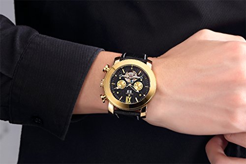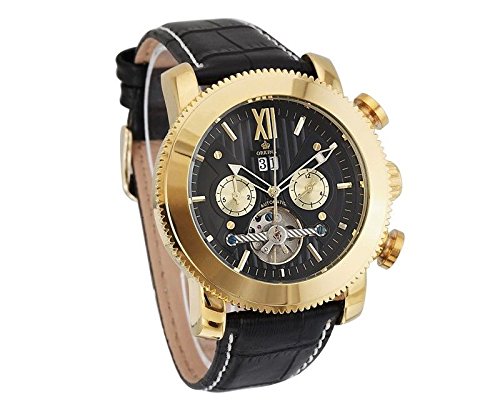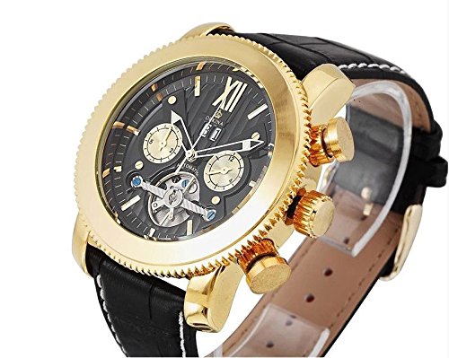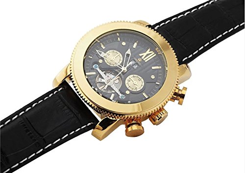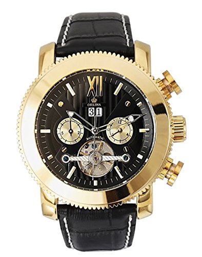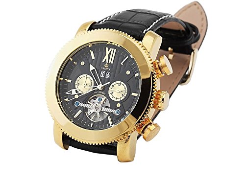 GuTe Mechanical GuTe출품 to 루비《욘》 빅 케이스 강건 두껍 스테인레스 밴드 협기 트리플 캘린더 화이트에 골드 맨즈 자동 감기 손목시계