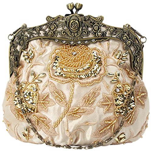 (bettyhome)/Accessories/Handbags/DIRECT FROM USA/Bettyhome Women Retro Elegant Gold Flower Embroidery Beads Sequins Evening Bag Party Handbags W...