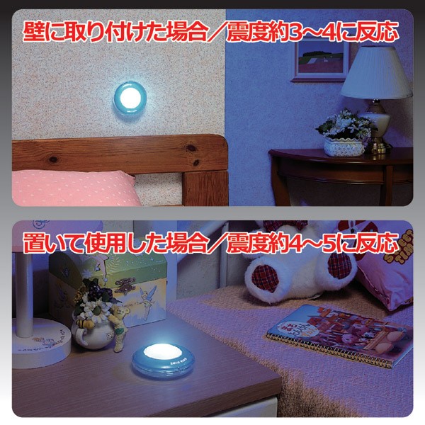 本品は、地震の揺れに反応して点灯してくれるライトです。置く場所によって条件は変わりますが、震度3~5の揺れに反応して点灯します。