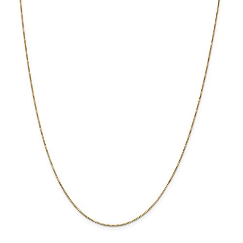 SPECIFICATIONS: Jewelry Type: Anklets, Chain Type: Box, Anklet Type: Chain, Material: Primary: Gold, Material: Primary - Color: Yellow, Material: Primary - Purity: 14K, Finish: Polished, Chain Length: 9 in, Chain Width: 0.7mm, Clasp /Connector: Lobster, Feature(1): Nickel Free, Warranty: Lifetime Guarantee