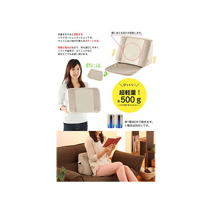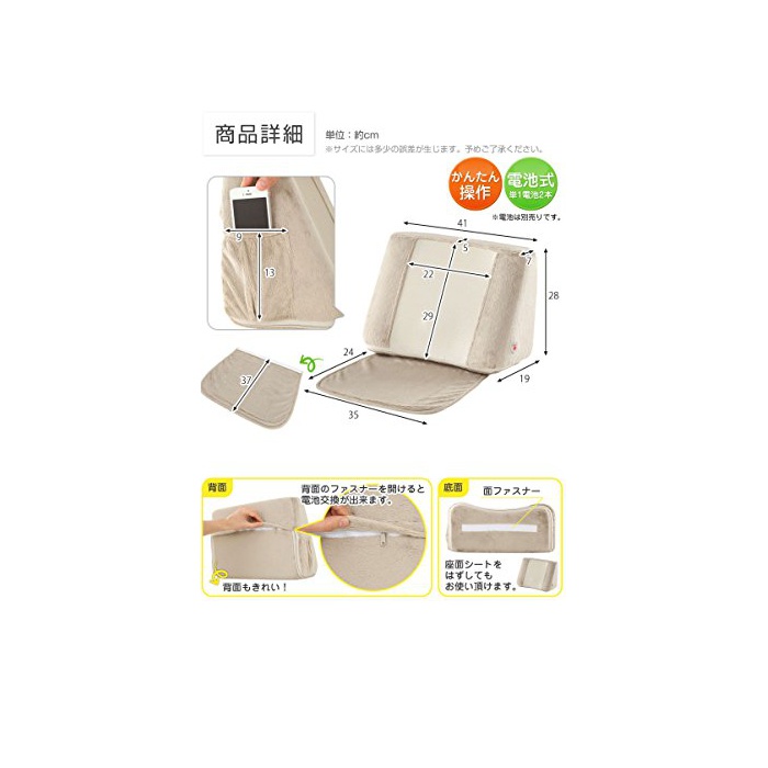 부들부들 두려워한(흔들린)다!리렉제이션 쿠션입니다.스위치를 넣고 체중을 곱하(싣)으면 요부분이 진동하고, 기분이 상쾌한 진동으로 위로해집니다.초경량&전지식이기 때문에,운반에 편리!요부분은 환기성이 좋은 메쉬 원단에,그 외의 부분은 털이 짧은 퍼(fur) 원단과 같은 부드러운 손을 대어 기분입니다.싸이드에는 포켓 첨부 와.통상의 쿠션으로서도 사용하실 수 있습니다.