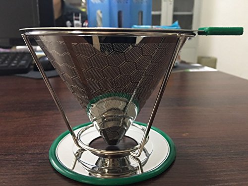 -. Title : Pour Over Coffee Filter Stainless Steel Coffee Drip Cone With Separate Stand and Silicone Handle Paperless Reusable Coffee Brewer Maker For 1-4 Cups