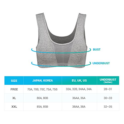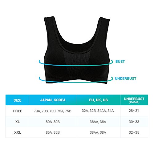 -. Feature : ✔️ BREATHABLE MESH MATERIAL & MEDIUM SUPPORT - If you are an outdoor activities enthusiast or a work out mania in need of a Medium-Support sports bra, you definitely need a breathable one. Clivia's Sports Bras features a mesh design on the front that utilizes Moisture Management Technology, which is perfect for absorbing the sweat from jogging, biking, yoga, dance, gym, aerobics, pilates, weight training and so on. / ✔️ ALL-DAY COMFORT & 4-WAY STRETCH CONSTRUCTION - Clivia's Sports Bras are loved day and night, as daily bras and/or simple sleeping wear. The reason why women usually don't wear bras while sleeping is that it feels uncomfortable. You will find out that Clivia's Sports Bras are super comfortable and stretchy, allowing you to move freely in any desired motion. / ✔️ REMOVABLE PAD & PERFECT FIT - The pads inside are removable, allowing you to enjoy it both as an inner wear and as a sports top. There are times when you need pads and when you don't - You can easily remove the pads or leave them inside through a small opening inside of the cup. Furthermore, it keeps your breasts in beautiful shape and provide you with tangible support. Clivia's Sports Bras fit cup sizes from A~B. If you are over a C cup, please reconsider purchasing. / ✔️ WIDE STRAPS & BOTTOM BAND - Most women experience the pain from the straps when they digs in the shoulders. Clivia's Sports Bras have very supportive wide straps which prevent this from happening. They also contain an under bust band (22mm) that is wide enough to keep good shape of your body. Make sure that you give your body the comfort and support it deserves with a good bra. / ✔️ SOFT SEAMS & WIRE-FREE - Clivia's Sport Bra prevents chafing and irritation. It has a soft and comfortable lining. Made in Korea with expert craftsmanship, Clivia promises its buyers with superb quality. Experience the comfort that 'No wire, No hook' can lead you. It's time to be free from the stressful pressure on your breast and underwire bra nuisance.