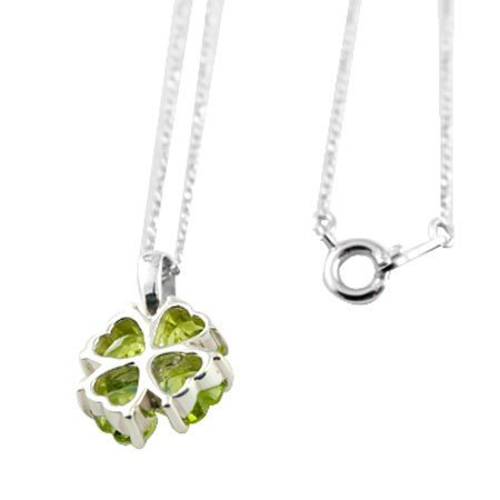 -. Feature : 幸運アイテム クローバーペンダント シルバー925 / 本体 シルバー925 / ネックレス シルバー925(全長40cm) / ペリドット 5ミリハート 天然ダイヤモンド0.005ct / 全長17ミリ
