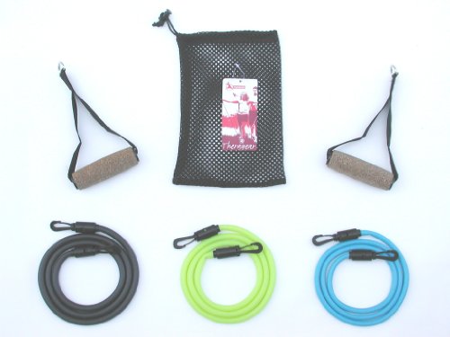 Studio : Theragear Publisher : Theragear Binding : Misc. Product Description The set is designed with your health and the environment in mind. Due to increased numbers of latex allergies we have designed our bands latex free. The latex free bands match the performance and resistance of their latex counterparts. The set features interchangeable natural cork handles. The cork handles provide a comfortable grasp feeling. Cork is a natural renewable, non toxic material. The Theragear Tension Band Workout Set provides you with a convenient workout designed to strengthen, sculpt and tone all major muscles of your body. Unlike regular exercise bands, the unique clipping system allows users to adjust resistance levels from 5lbs to 13lbs and match the workout intensity to their own level of fitness. 0