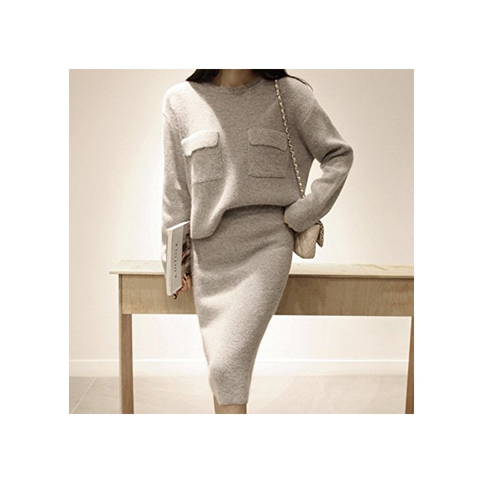 셋업 니트 니트 셋업 기모기모니트 레이디스 트렌드 타이트 스커트 원피스 원피