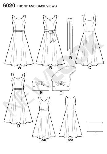 -. Feature : Misses' Dresses and Purse in size A (8-10-12-14-16-18), New Look Pattern #6020 / Number of looks included: 5 / Designed in UK, Manufactured in USA / Instructions are written in English, Spanish, and French / Easy sewing pattern