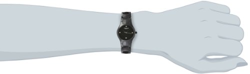 - Feature : Stylish black etched dial / Genuine crystal hour markers at the 12, 3, and 9 o'clock positions / Black ceramic case and bracelet / Japanese quartz movement / Not water resistant