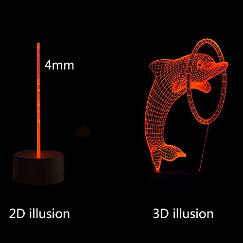 - 3D VISUAL EFFECT- Amazing 3D optical illusion touch night light. Great colors and awesome looking bright, it can be put in bedroom, child room, living room as decorative light.