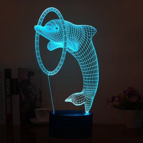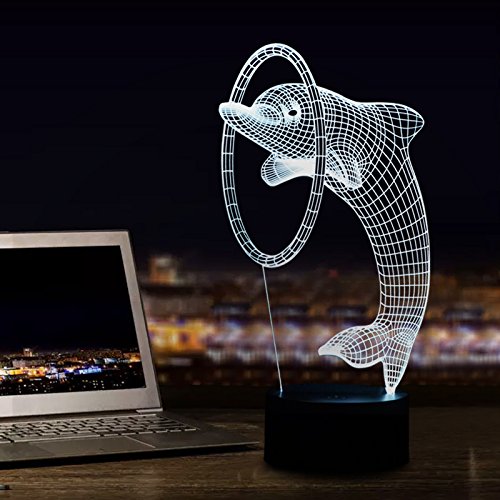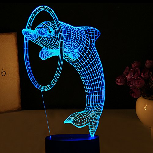 Cute 3D Visualization Night Lights, 7 Colors Change Lovely Dolphin Shape Touch LED Desk Lamp Table Light for Room Bedroom Home Decoration or Birthday Christmas Gifts for Kids Friends