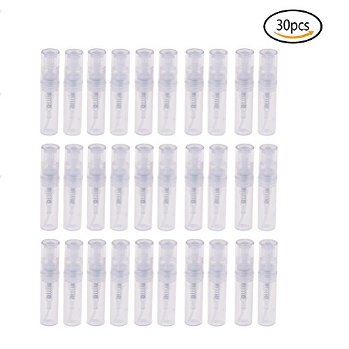 CosCosX 30 Pcs Mini 2ml Clear Atomizer Plastic Bottle Spray Refillable Tube Perfume Empty Sample Bottles for Travel Party Portable Makeup Tool