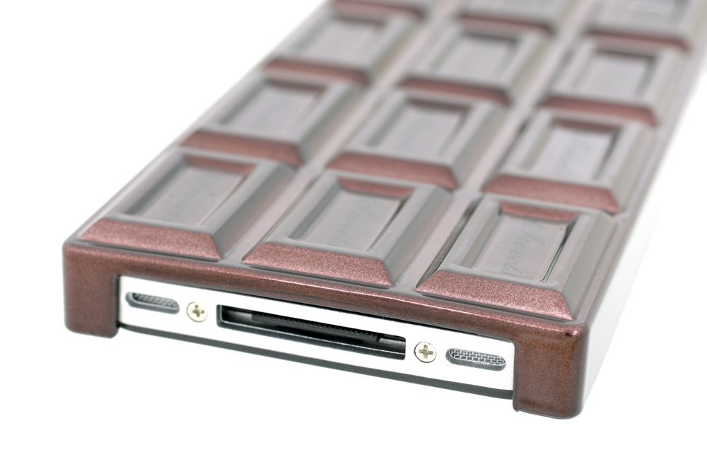 It looks like a delicious chocolate seems to jump out of the wrapping paper! It is a cute hard case drifting luxuriously in metallic color.
