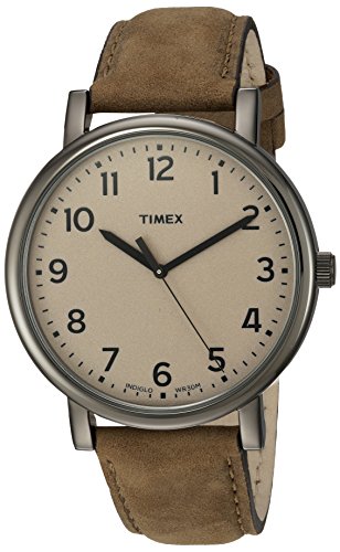 Brand, Seller, or Collection Name:Timex Model number:T2N957 Part Number:T2N957ZA Item Shape:Round Dial window material type:Mineral Display Type:Analog Clasp:Buckle Case material:Brass Case diameter:42 millimeters Case Thickness:9 millimeters Band Material:genuine-leather Band length:Unisex Band width:20 millimeters Band Color:Brown Dial color:Beige Bezel material:Brass Bezel function:Stationary Special features:Arabic numeral hour markers Item weight:1.76 Ounces Movement:Analog quartz Water resistant depth:100 Feet