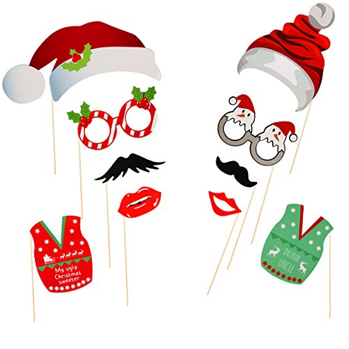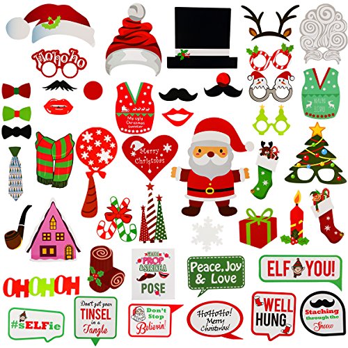 - More Creative Props: 46Pcs Christmas Photo Booth Props include Christmas hat,mouth,Christmas snowman glasses,Christmas clothes,Tie,Bow tie,Christmas gift box,Christmas theme card,christmas themed props that will really make your photos interesting!
