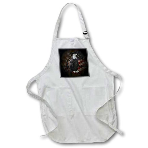3dRose apr_11602_1 Bald Eagle with American Flag Full Length Apron, 22 by 30-Inch, White