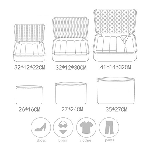 - Package include 6 pieces (3 cubes + 3 pouches) in different sizes for different uses. Pouch Size: 16 x 16cm(small); 27 x 24cm(medium); 35 x 27cm(large); Mesh Cubes Size: 32 x 12 x 22cm(small); 32 x 12 x 30cm(medium); 41 x 14 x 32cm(large)