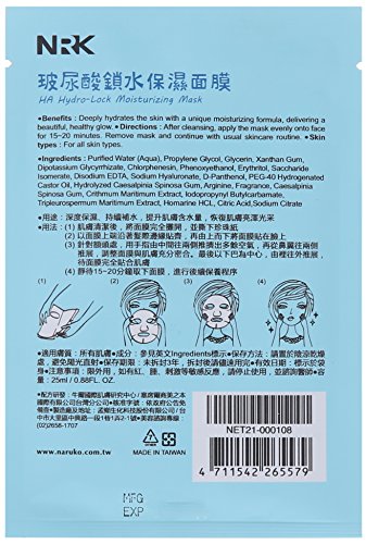 Naruko ha hydro-lock moisturizing mask is designed to deeply condition, moisturize and whiten the skin through a thin fiber cloth