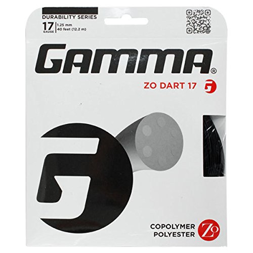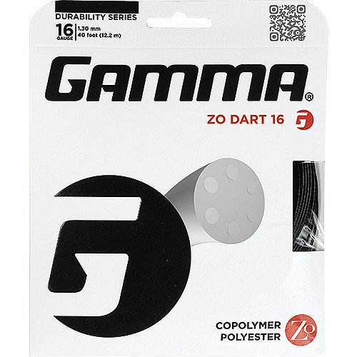Studio : Gamma Publisher : Gamma Binding : Misc. Product Description Gamma Zo Dart offers control and spin with a crisp firm feel This copoly string provides plenty of bite to keep your shots in the courtGauge 17 125 mmLength 40 ftComposition Copolymer Polyester 0