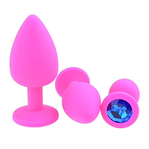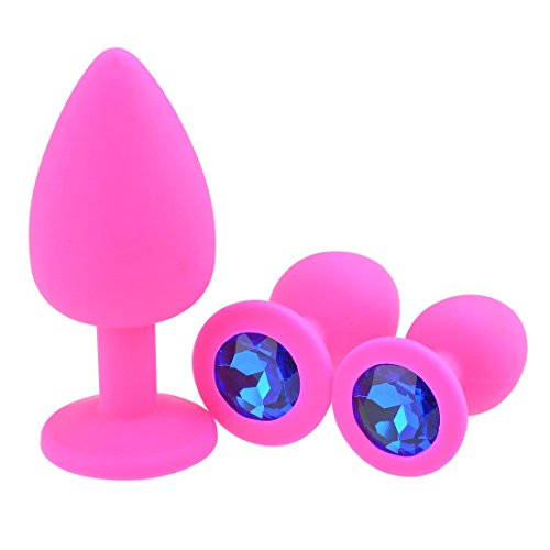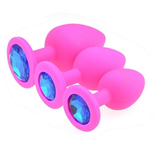 Shanhai Pcs Large, Medium, Small Silicone Jeweled Anal Butt Plugs Anal Trainer Toys (Pink Blue)