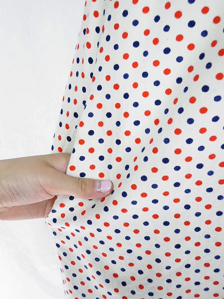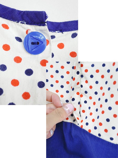 Ladies ブランド- カラー白ベース・青・赤・紺 メール便不可 コンディション★★★ 素材- 表記サイズ記載なし スタッフコメント裏地、タグなし。右袖下ダメージあり。左肩上パイピンクにヨゴレあり。 実寸サイズ 着丈 91 cm 身幅 48 cm 肩幅 36 cm ※ウエスト・ヒップ以外は平置き採寸