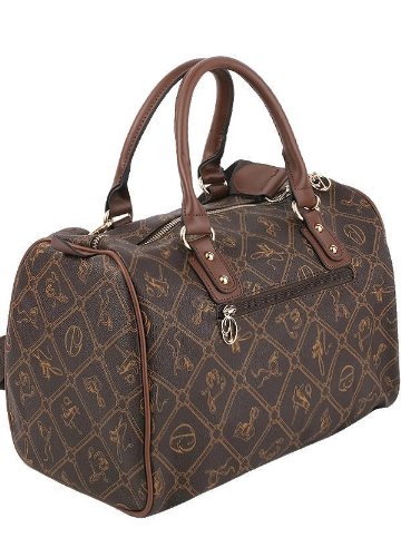 Stylische Designer Handtasche mit tollen Details aus hochwertigem Lederimitat Die Tasche besticht durch einmaliges Design und hat eine hochwertige Qualität! Aus weichem Kunstleder! Die gesamte Tasche ist mit aufwendigen Druck verzeihrt! In der Mitte wurde das Designer Logo in Form eines Metall-Plättchens angebracht! Die Tasche wird mit einem Reißverschluss geschlossen! Das Innenfutter wurde aus einem edlen Satinstoff verarbeitet mit der Prägung der Designerin! Innen: 1 Handyfach + ein kleines Fach für Lippenstift ect. 2 kleine Fächer mit Reißverschluss Außen: 1 Fach mit Reißverschluss (hinten) Maßangaben: 33 cm L x 13cm B x 28cm H Henkelhöhe: 16cm + ZusatzhenkelFeature