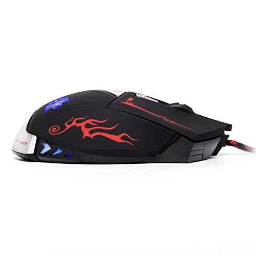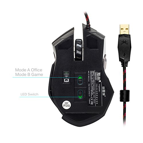 -. Feature : DPI: 4 Different DPI Levels with blue light indicator: 800/1600/2400/3600. System Requirements: Windows XP/VISTA/7/8 Mac OS and other OS etc. / Backlight ON/OFF switch, the mouse has 6 automatic changing backlit color(yellow, green, light blue, dark blue, rose, red), you can control the mouse backlit by the backlit switch. / Mode switch at the bottom, chose gaming or office, follow your inclinations. Gaming/Office mode switch: "Mode A" - Double click, Homepage; "Mode B" - e-Mail, Windows menu. / 1.8m braided cable; USB interface; Size: L127*W80*H39mm. AVAGO9800 laser: sensor inside and outside double diamagnetic loop, stronger anti-interference performance. / Built-in counter weight, more stable. Ergonomic design, especially suitable for the right hand; Rubber surface, comfortable hand feeling.