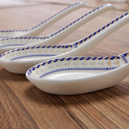 HAND PAINTED BLUE EDGING: The blue edging on these Chinease soup spoons set is all hand painting widely recognized as more valuable than uniform porcelain decal by porcelain industry. And the blue edging may change during porcelain firing. Thus, every one of these porcelain spoons is unique and not uniform to any other: some light and some dark.