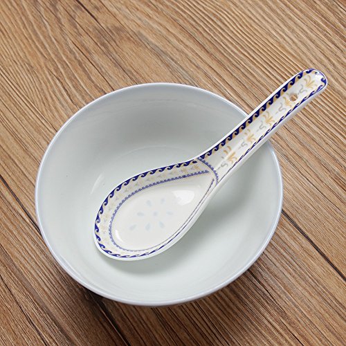 DAINTY DESIGN: Elegant flower glaze on the Asian soup spoons delight you when you use them for soup, rice, porridge, cereal, appetizers, wonton, Tong sui, pho, udon, ramen and other noodles. You could use the spoons comfortably and easily with their length of 5 inch and width of 1.7 inch.