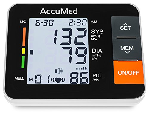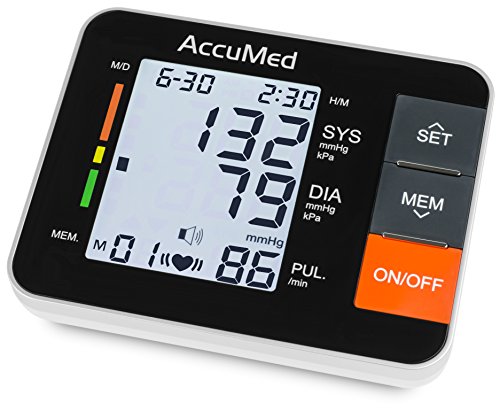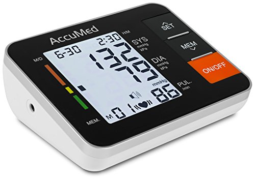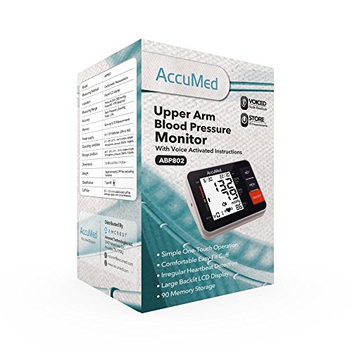 - Title : AccuMed ABP802 Portable Upper Arm Blood Pressure Monitor with One-Touch Intelligent Automatic Measurement (Black) - 4-in-1 Functionality for Systolic / Diastolic BP, Heart Rate (BPM), Hypertension Guide (WHO Classification Indicator), & Arrhythmia Alerts - Includes Voiced Audio / Silent Mode, High-Contrast LCD Display, Built-in Storage Memory, Carrying Pouch, USA Warranty, and More *FDA Approved with Clinically Proven, Professional Accuracy for Home Medical Use