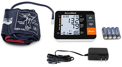 - Feature : Intelligent: Inflates automatically after one button press for quick and accurate measurements of BP and heart rate, with on-screen indicators for arrhythmia and hypertension (per WHO grading standards - mild, moderate, or severe). / Easy to Use: Large backlit display, plus option for voiced audio instructions and readouts. / Battery Saving: Auto-off feature and smart power engineering enable you to perform over 200 measurements with four AA batteries (included). AC Adapter is also included for operation with wall outlet power. / Built-in Memory: Stores the last 90 readings automatically to help you easily monitor your health over time. / Foscam Digital Technologies is the authorized US distributor of AccuMed products and every authentic unit is guaranteed by Foscam's 1 Year USA Warranty.