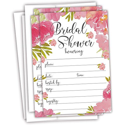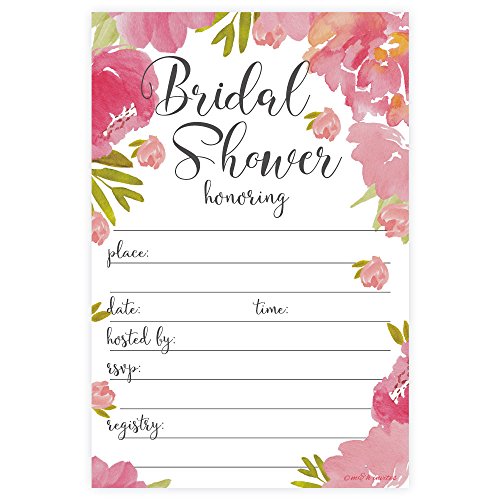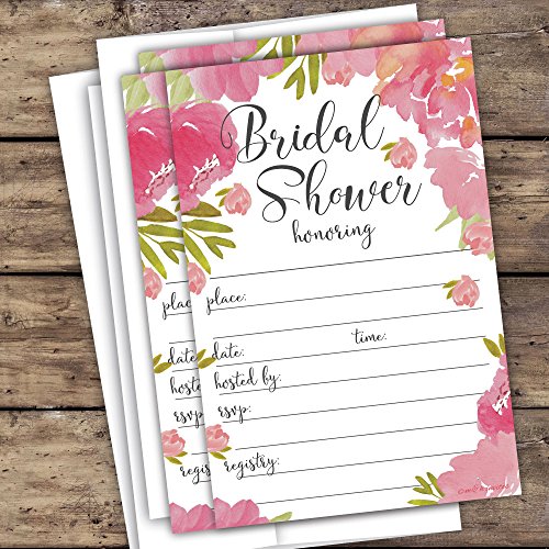 Pink Watercolor Floral Bridal Shower Invitations (20 Count) With Envelopes