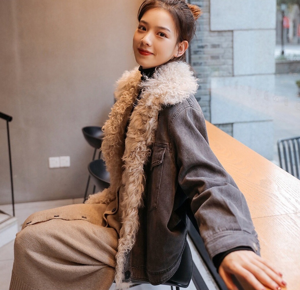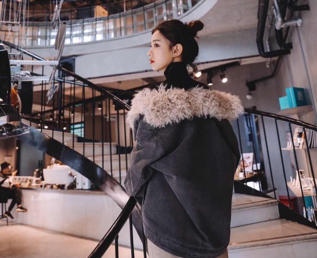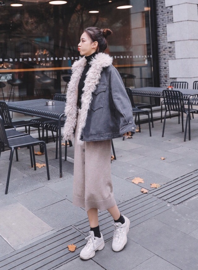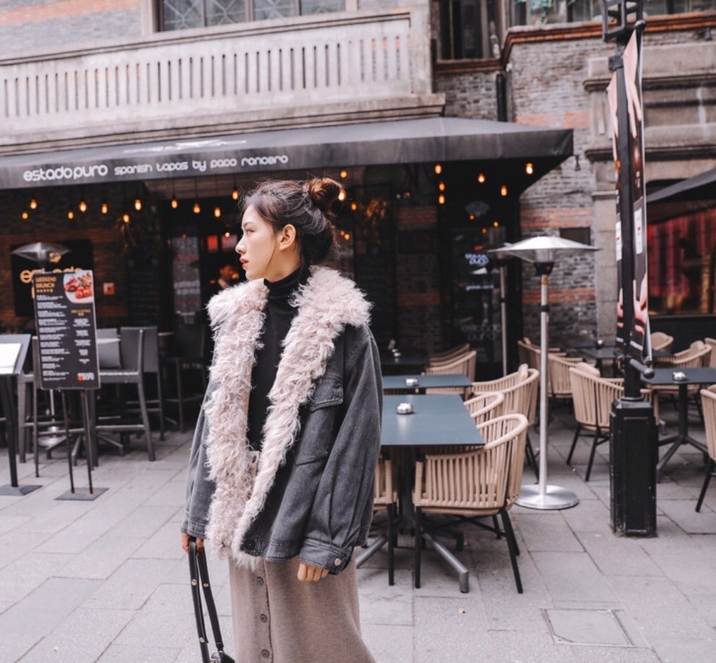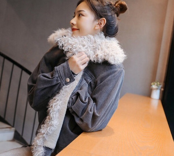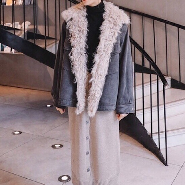 襟元のファーが華やかで可愛らしい雰囲気のショート丈デニムジャケットです。