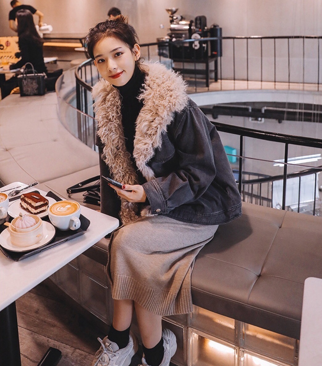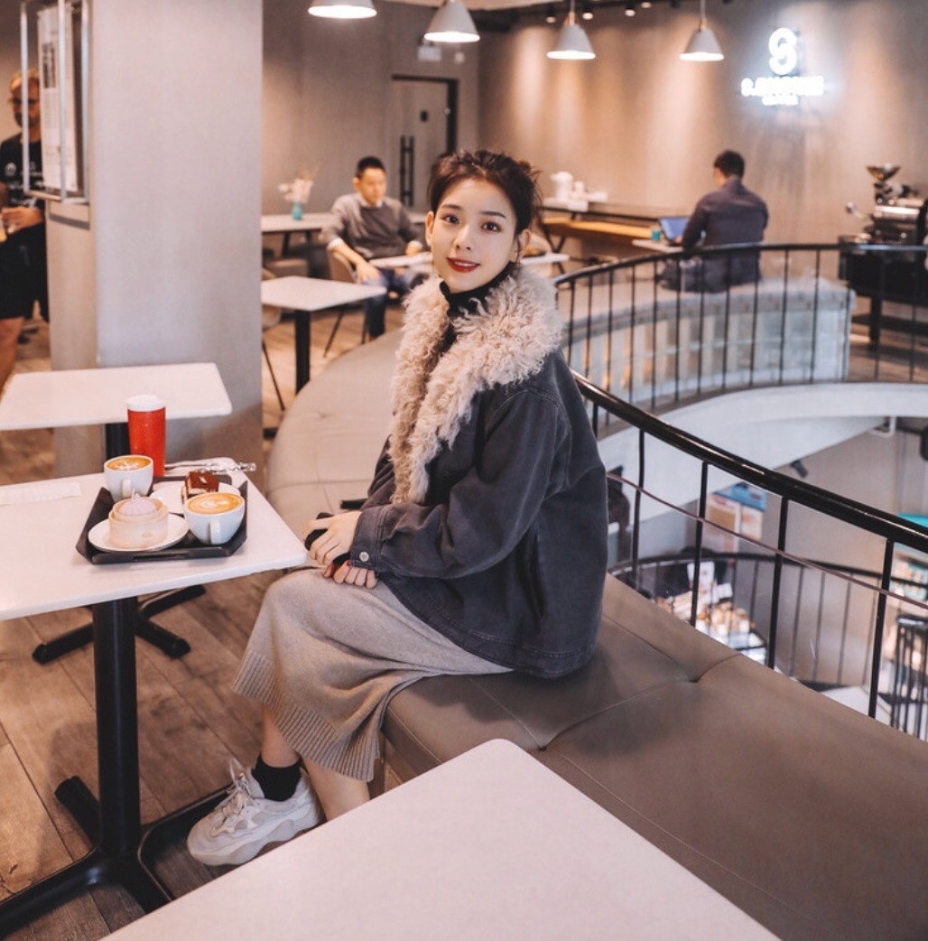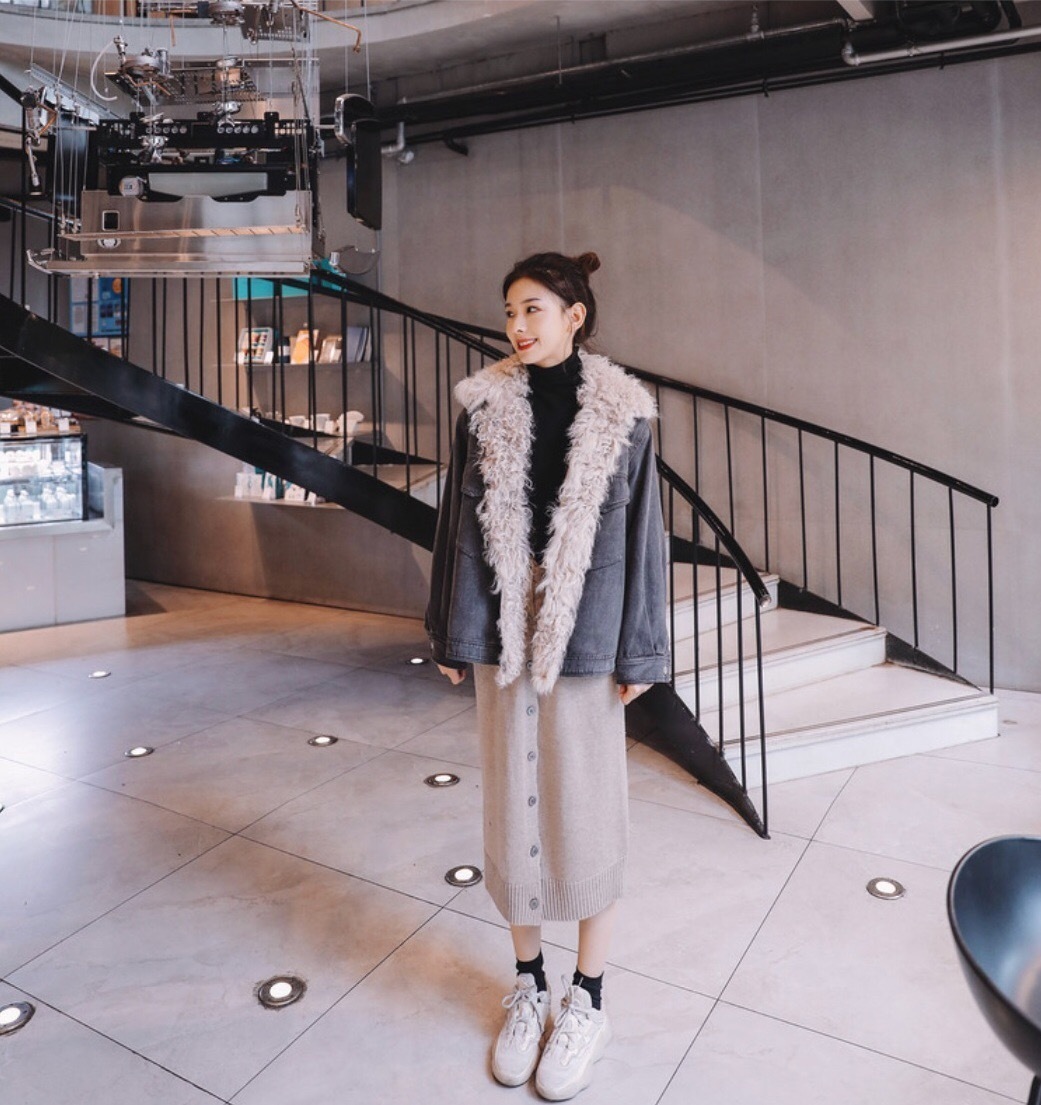 襟元のファーが華やかで可愛らしい雰囲気のショート丈デニムジャケットです。