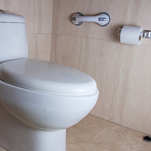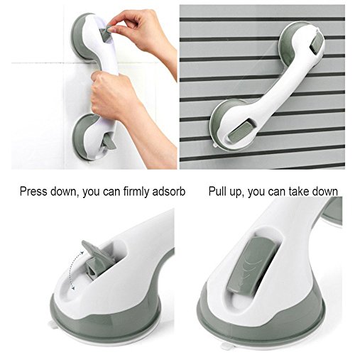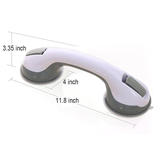 - BORN FOR BATHROOM: 11.8*4*3.35 inch, the super strong suction shower handle is designed to hold on the top of the tub with a flick switch. Sturdy and secure, even an adult can't pull the super suction down with his largest strenght. Perfect for bathroom using.