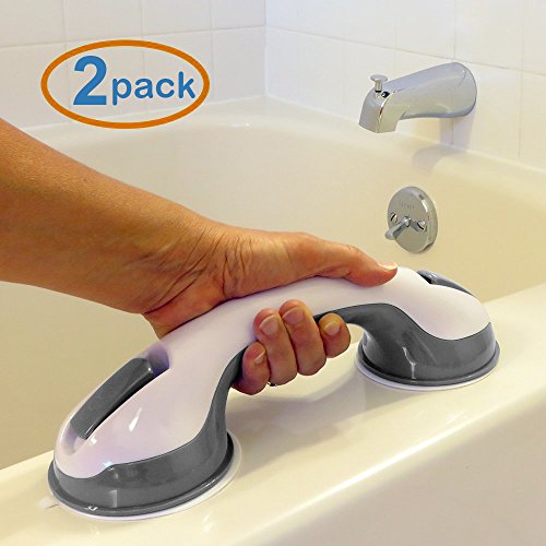 SUPOW Bathroom Grab Bar, Strong Suction Shower Handle & Bathroom Balance Bar Anti-slipping Suction Cup Support Assist Handle Grip Hand Rail Helping Tool Wall Mount for Elderly & Children (2 Pcs Grey)