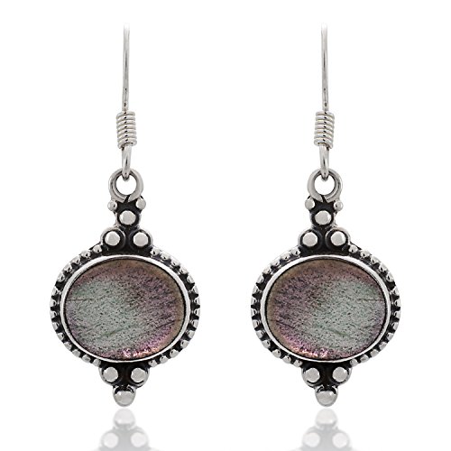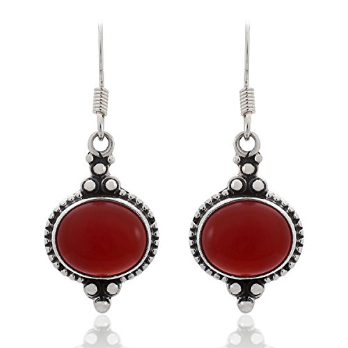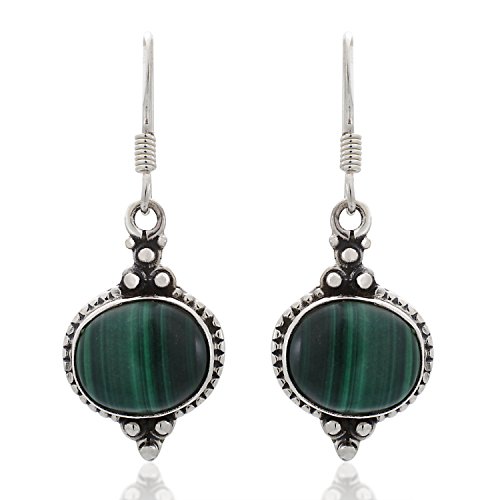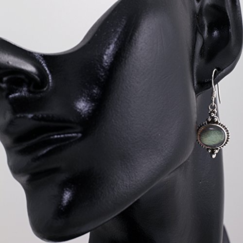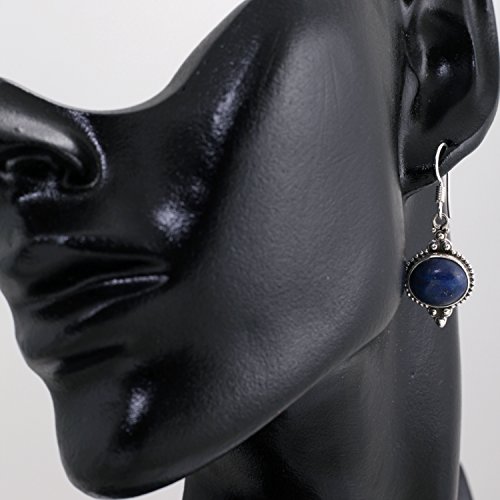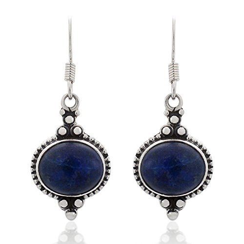 -. Title : 925 Sterling Silver Natural Gemstone Indian Inspired Vintage Oval Dangle Hook Earrings 1.5"