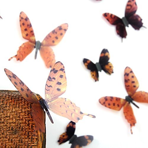 Amaonm 18PCS 3D Removable Transparent PVC Butterfly Wall Decals Butterflies Wall Stickers & Murals Wallpaper Wall Treatments Stickers Home Decorations Art Decor for Kids Gilrs Living Room Bedroom Wallpops Decal (Brown)
