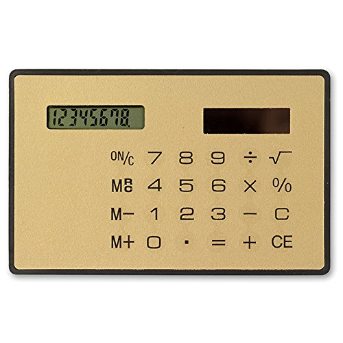 Solar 8 digit credit card size calculator. Presented in black pouch with transparent cover.