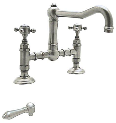 Rohl A1459LMSTN-2 A3402Lcib-2 Bridge Faucet with Metal Lever Handles, Satin Nickel