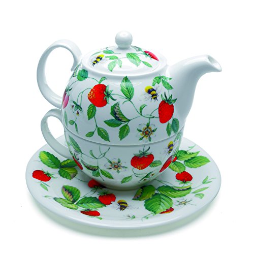 -. Title : Roy Kirkham Alpine Strawberry Tea For One Stacker Teapot Set