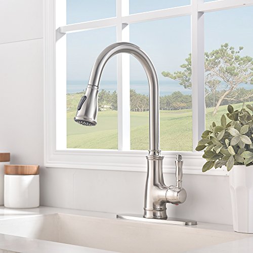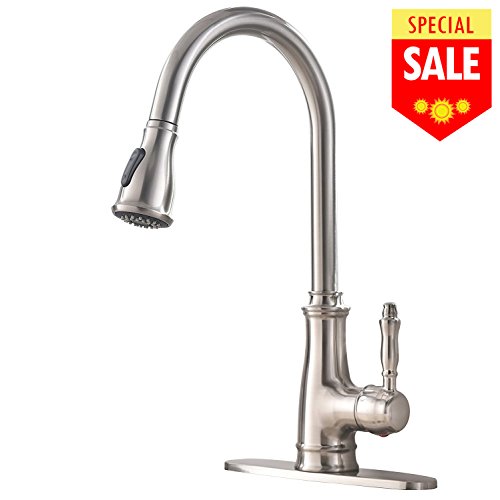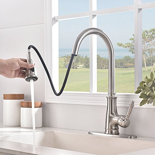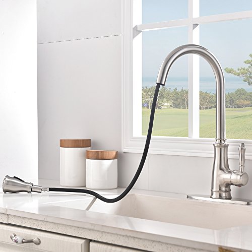 Dual Function Pull-Out Sprayer: aerated stream & powerful cleaning rinse,offer more room pots/pans and superior clearance for sink.