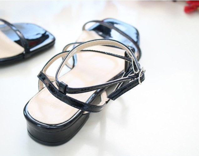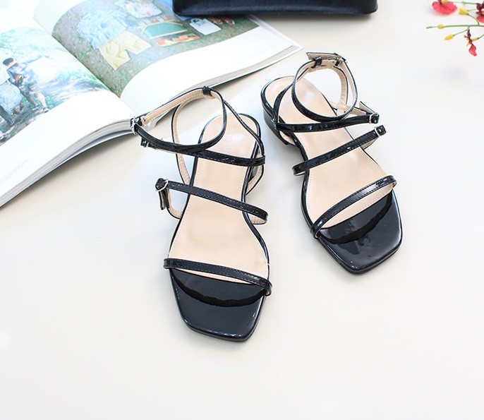 商品名:サンダル レディース ローヒール エナメル調 2018 夏 ファッション 靴 婦人靴