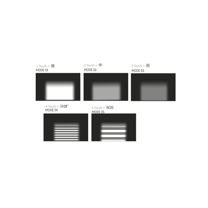 【모드 기능】 5모드 교환(강하다>中>弱>ストロボ>SOS)