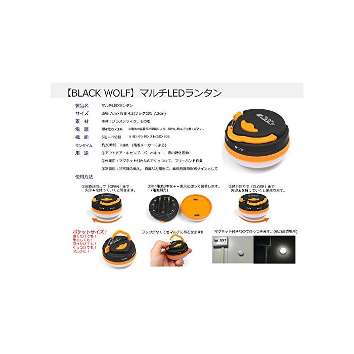 BLACKWOLF 【멀티LED랜턴】★밝기180루멘★런 타임 약20시간단4전지/eneloop대응