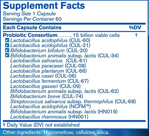 Multi strain probiotic formula including 4 clinically proven human derived strains: 15 Billion CFU per capsule. No FOS 16 probiotic strains. Provides live microorganisms that temporarily modify gut flora. Convenient capsule format. HLC Multi Strain is a 15 billion CFU probiotic formula, providing four strains of proprietary human-sourced Lactobacillus acidophilus (CUL-60 & CUL-21), Bifidobacterium bifidum and Bifidobacterium animalis subsp. lactis that temporarily modify gut flora, and have been tested in various human clinical trials.Feature