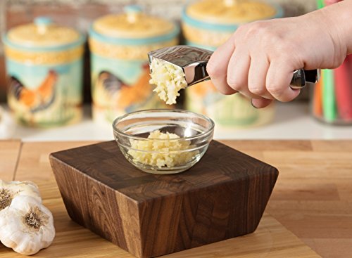 - AMAZINGLY EFFICIENT - Drop in a peeled OR unpeeled clove, give a squeeze and be amazed at how much garlic comes out. Welcome to the Rolls Royce of chef approved garlic presses. No waste here